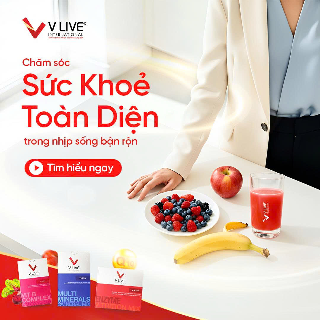 V LIVE tin rằng, chăm sóc sức khỏe toàn diện chính là nền tảng giúp bạn duy trì năng lượng, sự cân bằng và chất lượng cuộc sống bền vững.